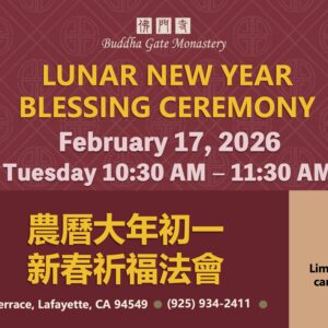 法會程序Ceremony Schedule • 佛前獻供 New Year Offerings • 佛前大供 Grand Meal Offering to Buddhas  • 叩吉祥鐘 Blessing Bell Services • 素食午齋 ...
